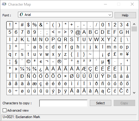 Character Map is a program built into Microsoft Windows that enables you to view the characters that are available in a selected font.