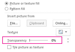Drag the Transparency slider rightward to adjust the degree of opacity for the picture