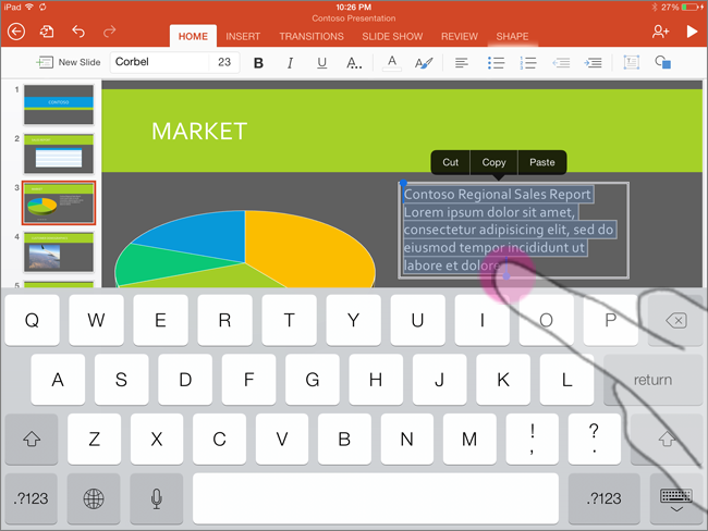 With the onscreen keyboard activated, tap anywhere in the text box to position the cursor.