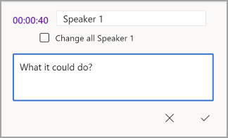 Edit the content or change the label. To change all instances of a label, select Change all Speaker [x].