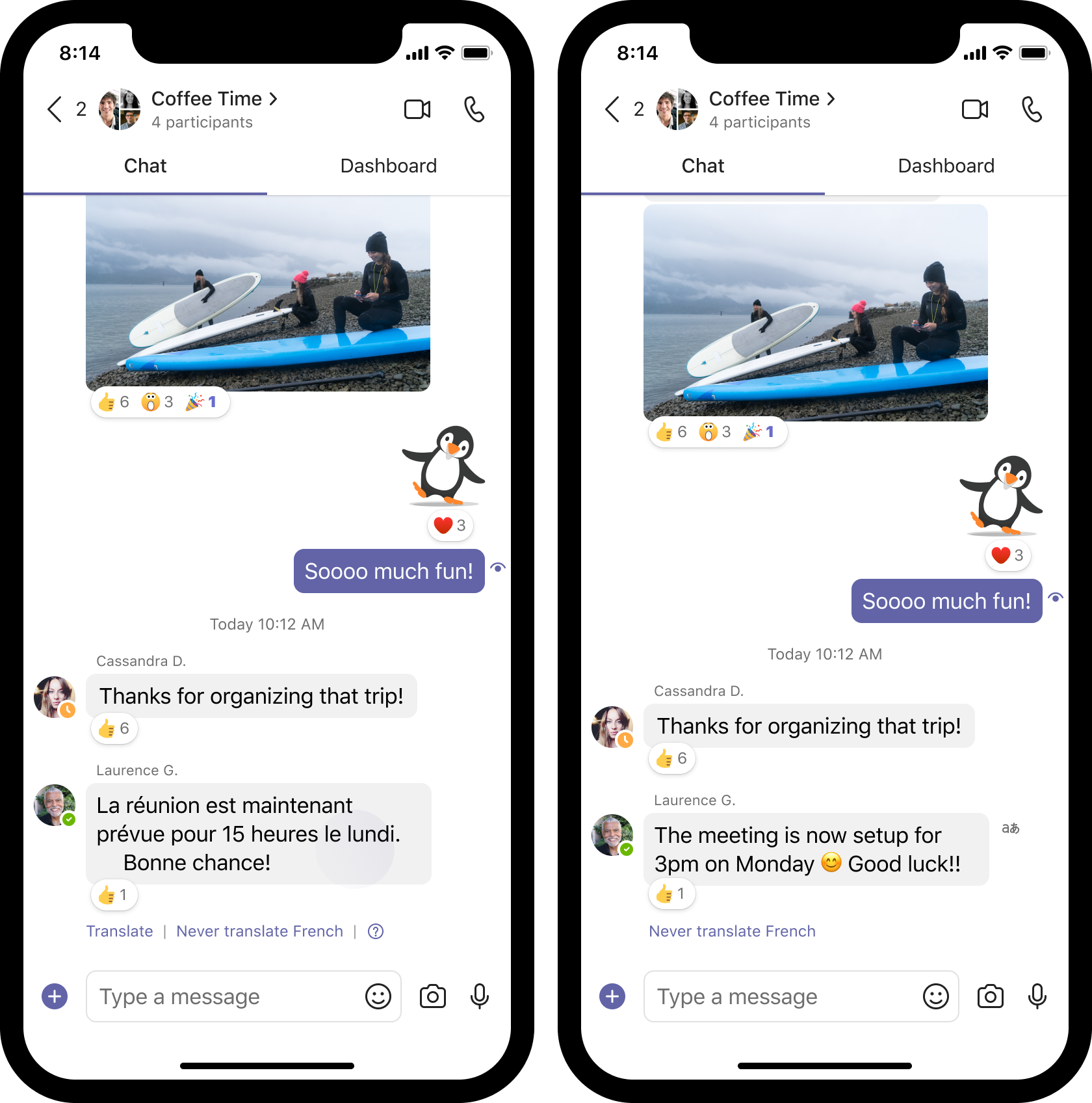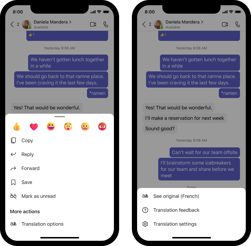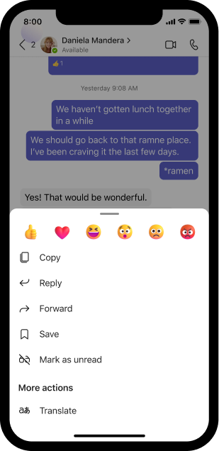 If you receive a message in another language, you’ll see the option to translate it into the language you’ve set for Teams.
